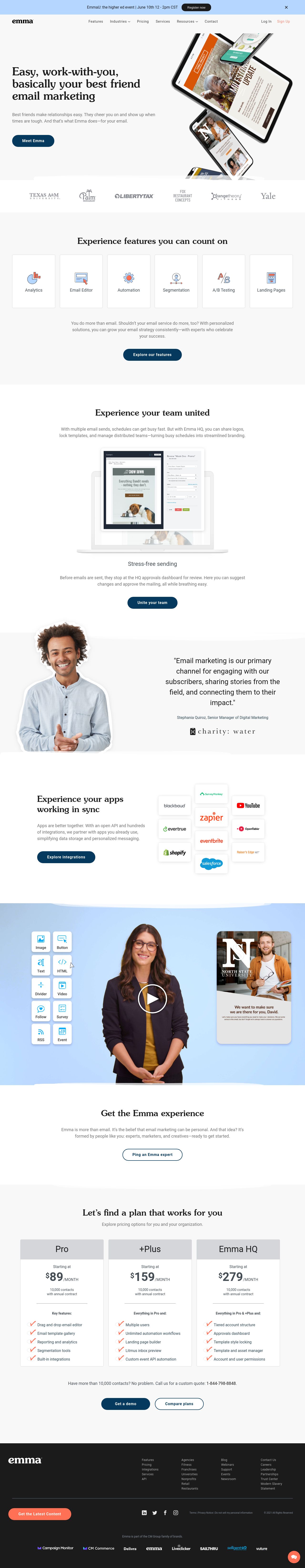 With our powerful automation and personalization features, you can create and send email campaigns that reach the right customer at just the right time... Command central for your marketing. Talk to our email experts. But with emma hq, you can share logos, lock templates, and manage distributed teams—turning busy schedules into streamlined branding. The code your own template allows you to code your entire email, from header to footer and everything in between. Start with one of our email templates, add your logo and brand colors, and you're off. Our professional services team is ready to dive in, help you get the maximum value from emma, and drive the best possible results for your business. Read tips, strategies, and examples of great email marketing. Marketers can also track the performance of each campaign and modify them according to their needs. Emma is powerful on its own, but integrations take email marketing to the next level. Emma can be used on multiple devices such as desktops, tablets, and smartphones.. Our professional services team is ready to dive in, help you get the maximum value from emma, and drive the best possible results for your business.